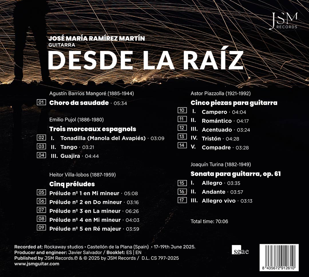 José María Ramírez Martín offers here a committed, sensitive, and rigorous interpretation of these works, consolidating his artistic voice in today’s guitar scene while simultaneously celebrating the guitar’s sonic and symbolic richness as a bridge between the ancestral and the contemporary.